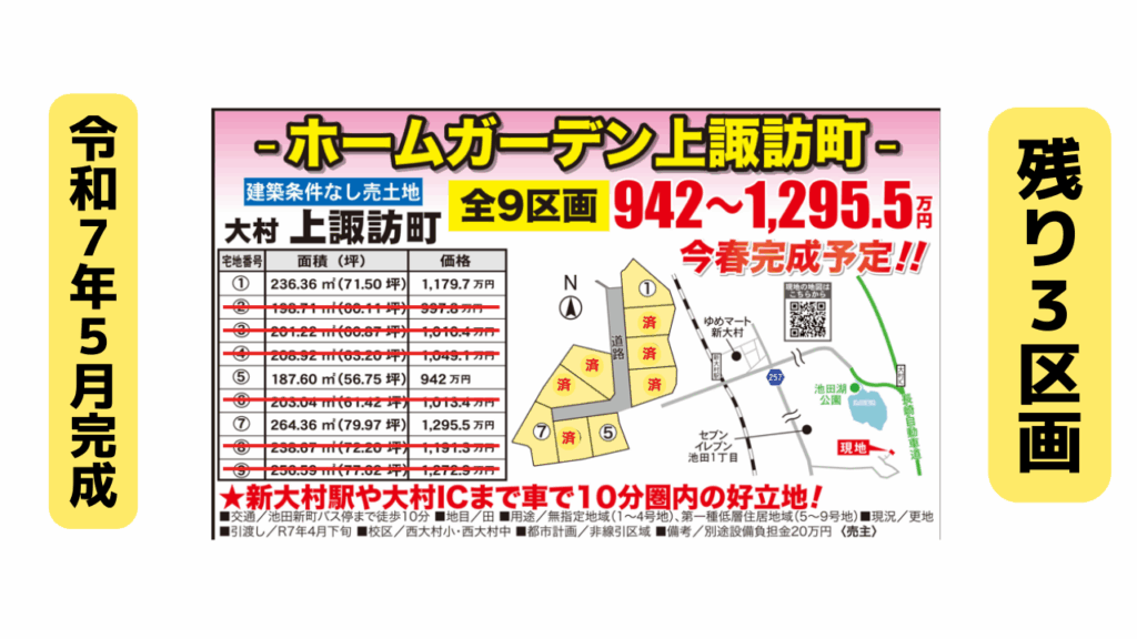 | 交通 | 大村IC(1700m) 新大村駅(1700m) 大村IC高速バス乗り場(850m) | 備考 | 別途設備負担金 |