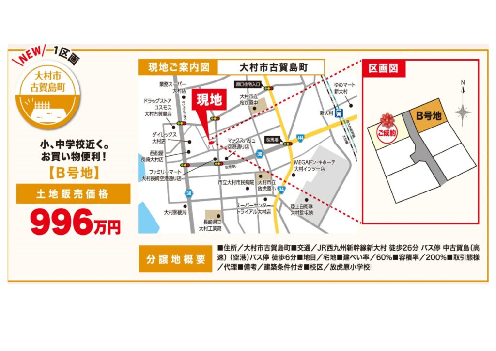 | 交 通 | 新大村駅 徒歩24分 西古賀島バス停 徒歩10分 | 学校区 | 放虎原小 桜が原中 |
