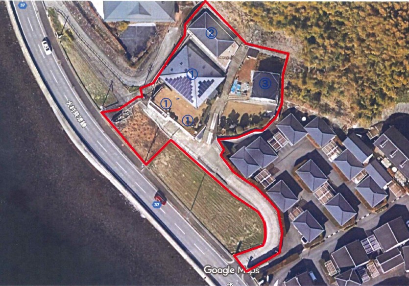 | 建物面積 | ①221.04㎡ ②88.04㎡ ③54.65㎡ 全て木造平家建 |